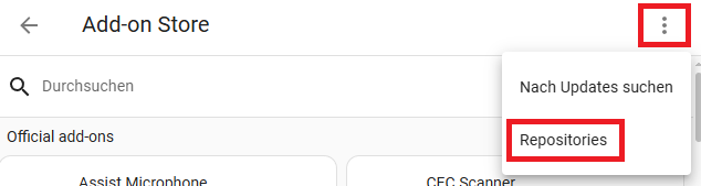 Oben rechts auf das Drei-Punkte-Menü klicken und "Repositories" auswählen: