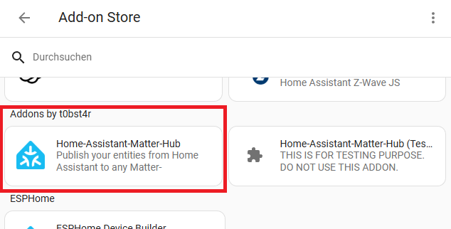 Die Installation des "Home-Assistant-Matter-Hub" über den Home Assistant Add-on Store ist schnell erledigt.