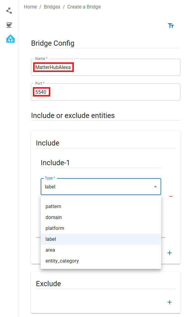 Wichtig: In der Bridge Konfiguration muss das Label immer klein geschrieben werden! Großbuchstaben werden nicht funktionieren, auch wenn sie im Home Assistant verwendet werden.