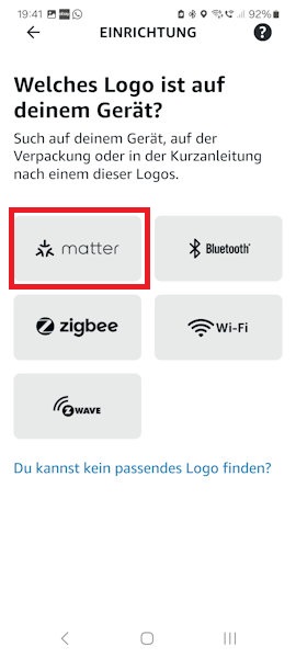 Nun die Kachel mit dem Matter Logo auswählen und den Anweisungen der App folgen: