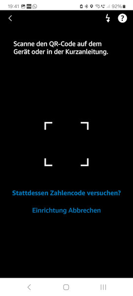 Es öffnet sich eine Seite mit dem QR-Code zum Koppeln mit Alexa: