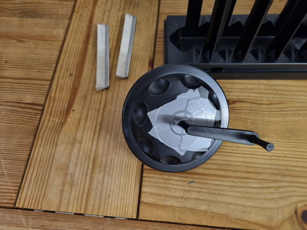 Einfach die Kurbel auf der Halbschale von außen mit etwas Panzertape fixieren.