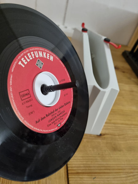 Ab und an kaufe ich Singles in doch recht schlechten Zustand auf Flohmärkten. Diese weiche ich kurz im Spülbecken mit normalem Geschirrspülmittel ein und wasche sie mit einem Microfasertuch ab. Danach werden sie gut mit klarem Wasser abgespült. Damit verhindere ich, dass die Reinigungsflüssigkeit gleich übermäßig verdreckt.